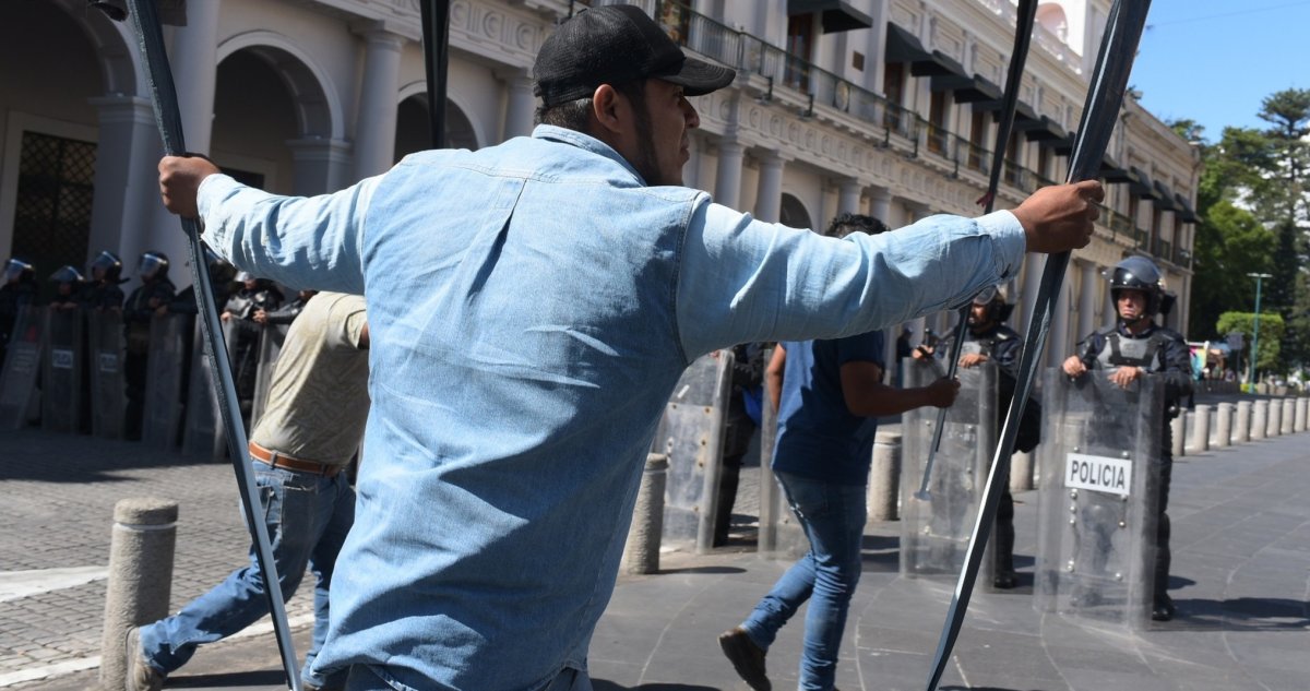 Policías antimotines desalojan a jubilados