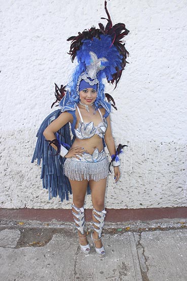 Orgullosa de participar cada año en el Carnaval de Tuxpan es como vemos a Susana González, desde luego que su comparsa siempre es de las favoritas de los espectadores, gracias al estilo elegante que portan todos los que la integran.