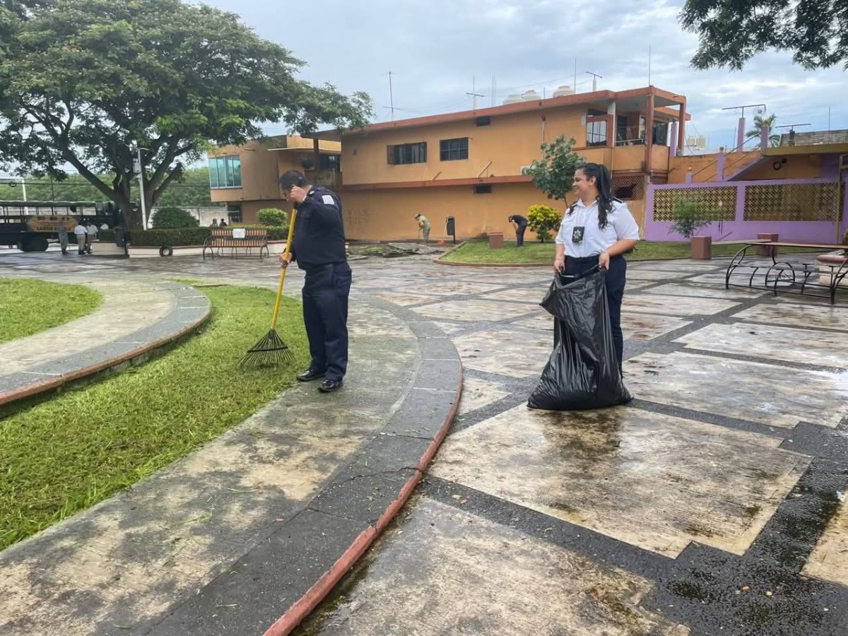 Realizan limpieza en el parque; cuerpos de seguridad y auxilio vial se suman al rescate de espacios públicos